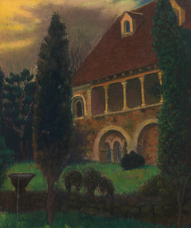 The studio which Theodore Pitcairn had built for Philippe Smit was part of an architectural complex comprising farm buildings and further away the studio (fig. 1) near the Pitcairn house "Dientjehaeme" (fig. 2). The architectural firm Meller, Meggs & Howe was freely inspired by the rural French style for the farm (fig. 3) and by the Roman style for the studio, while still respecting the traditional appearance of Pennsylvania barns. Some period architectural elements acquired in Europe by Theodore Pitcairn were integrated into the building. Today the studio serves as a chapel for the Lord’s New Church.