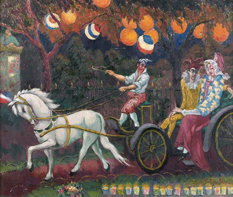 Geneviève Tambuté, eldest daughter of Lotty Urban-Leteneur, remembers sitting at the age of three on the artist's lap while he was painting this popular festivity scene which he offered her afterwards.
